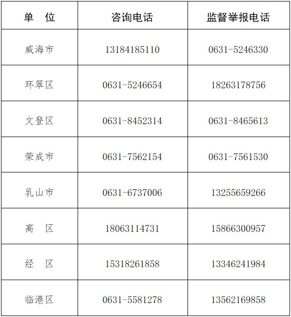 威海市征兵業(yè)務(wù)咨詢、監(jiān)督舉報(bào)電話
